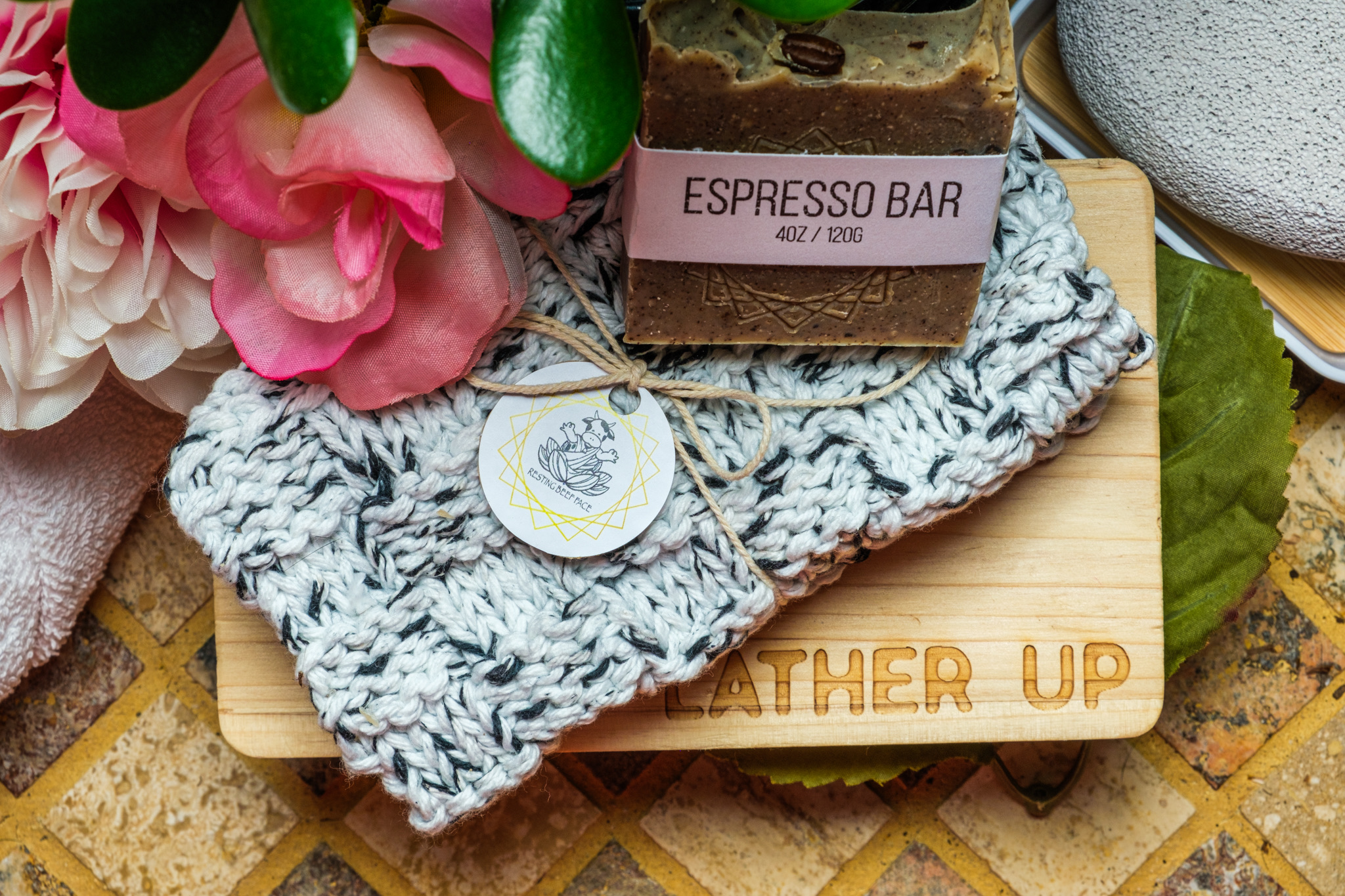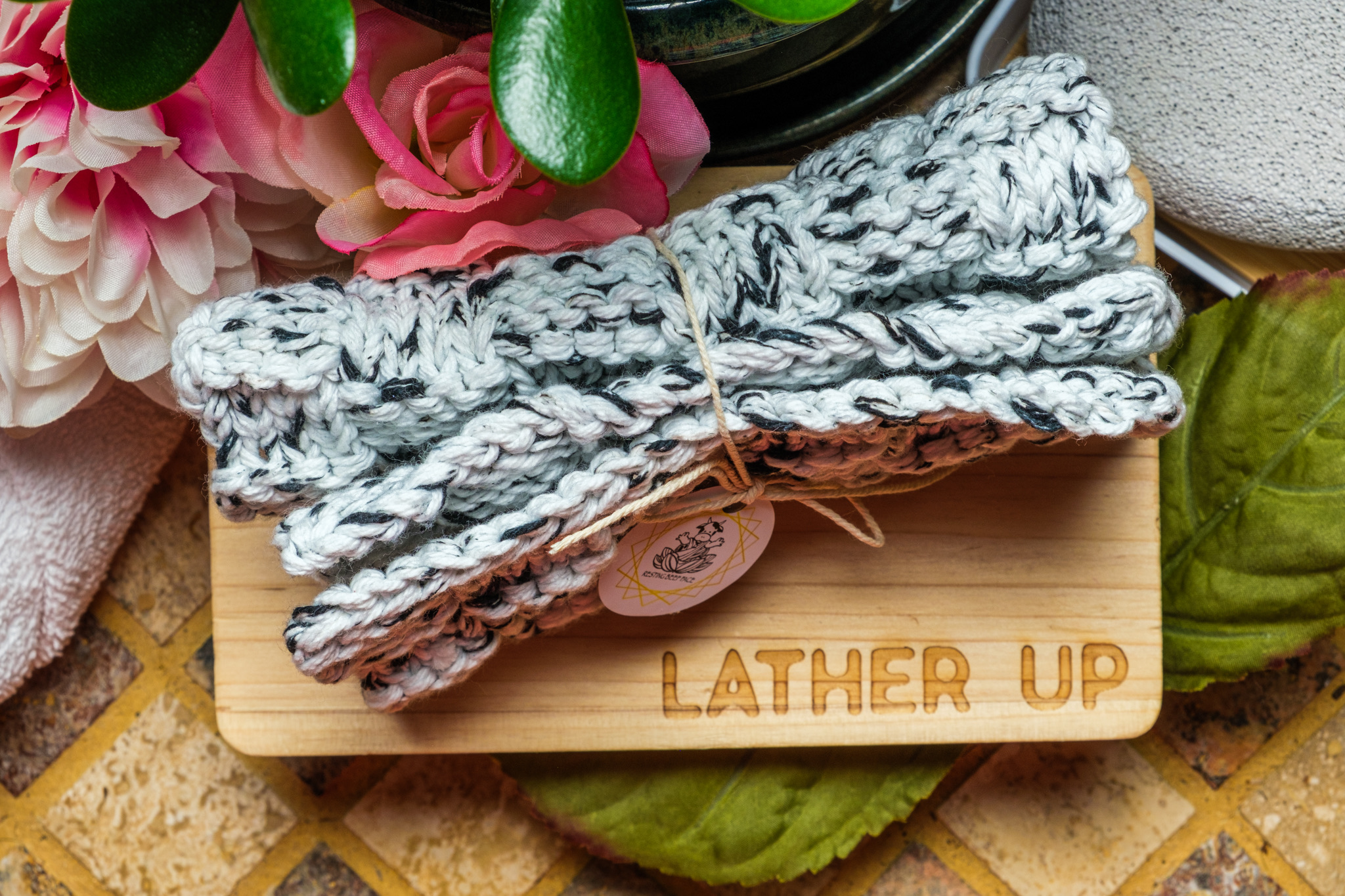 There little gems are hand knitted and are a perfect addition to our soaps. They measure 6.5” x 7” and come in a package of two. They are ideal for use in the shower or bath or even for your travels! Get yours today as they are a limited supply and only available for a limited time!!